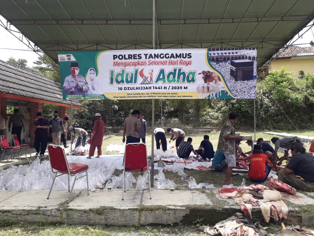 Polres Tanggamus Bagikan 350 Paket Daging Qurban