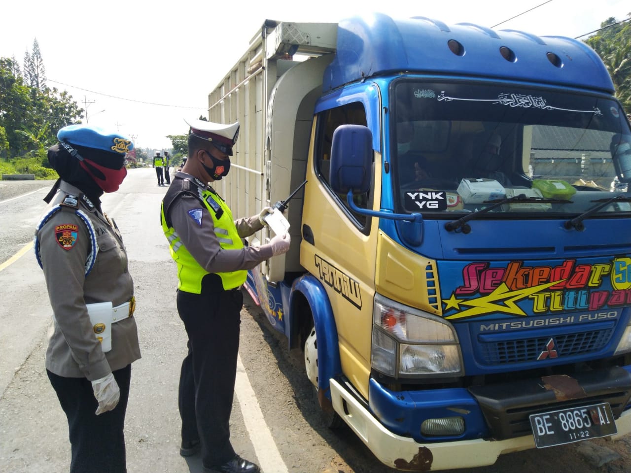 Kemudian pengemudi kendaraan roda empat atau lebih yang tidak menggunakan safety belt, serta kendaraan truck Over Dimensi dan Over Load (ODOL). Dalam pelaksanaaan razia itu, sejumlah pelanggar dilakukan teguran.