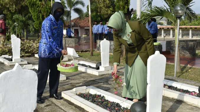Bandar Lampung, wartasindo.com —  Komandan Korem 043/Gatam Brigjen TNI Toto Jumariono, S.S., M.I.Kom, didampingi Ketua Persit KCK Koorcab Rem 043 PD II/Sriwijaya Ny. Diana Toto Jumariono memimpin ziarah rombongan di Taman Makam Pahlawan Bandar Lampung, rabu (02/09) pkl.08.00 wib dalam rangka memperingati Hari Ulang Tahun Korem 043/Gatam Ke-73 Tahun 2020 . Turut hadir dalam acara tersebut para Komandan satuan di jajaran Korem 043/Gatam, para Prajurit dan PNS serta perwakilan Ibu ibu Persit Korem 043/Gatam.