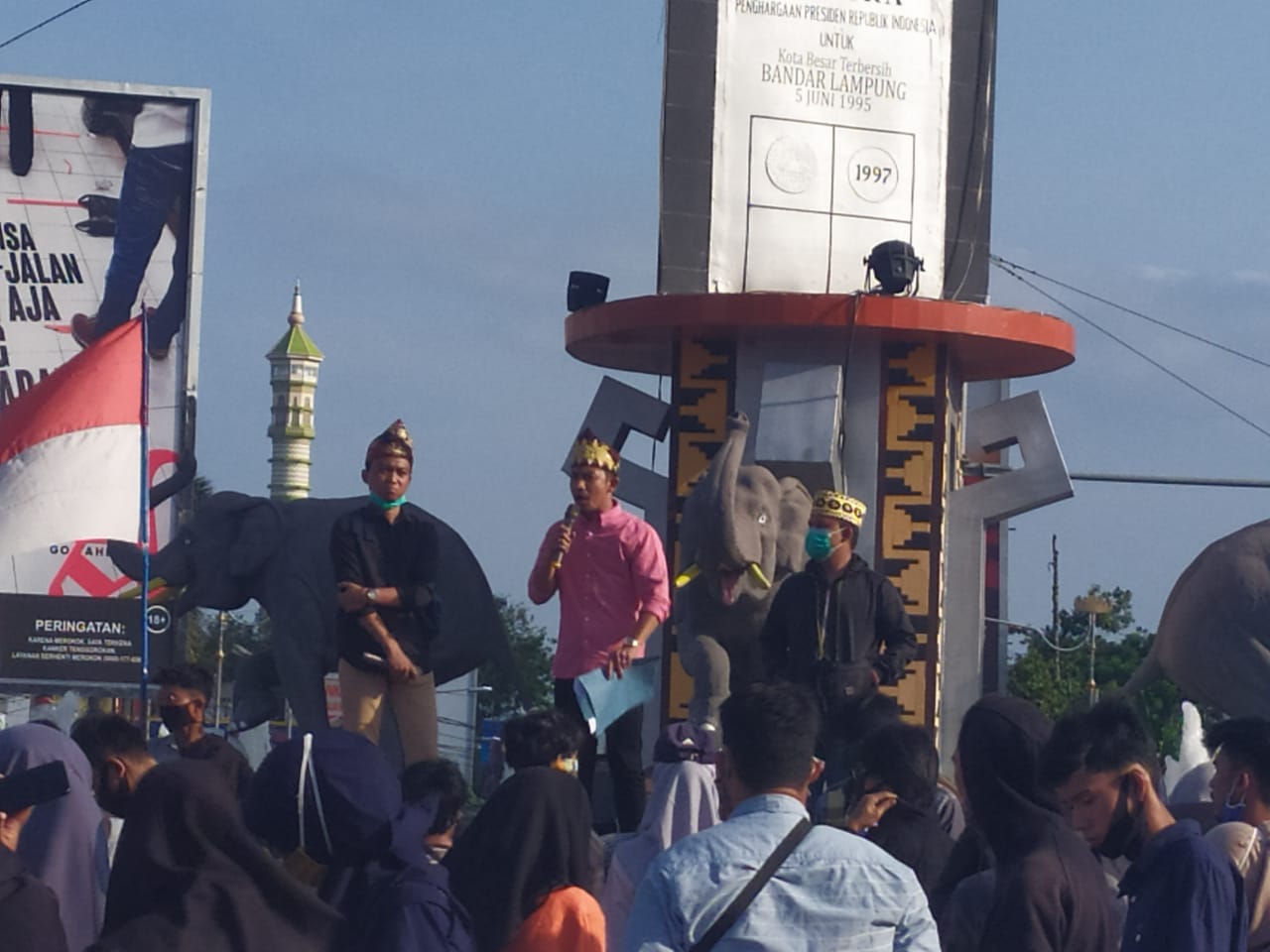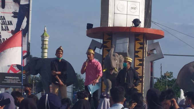Bandar Lampung, wartasindo.com — Ratusan mahasiswa yang tergabung dalam Koalisi Aktivis Mahasiswa Indonesia (KAMI) menggelar aksi di Bundara Tugu Adipura, Kota Bandar Lampung, Lampung, Minggu, 13 September 2020. Mereka mengingatkan semua pihak dan pemerintah bersatu menangani covid-19 .