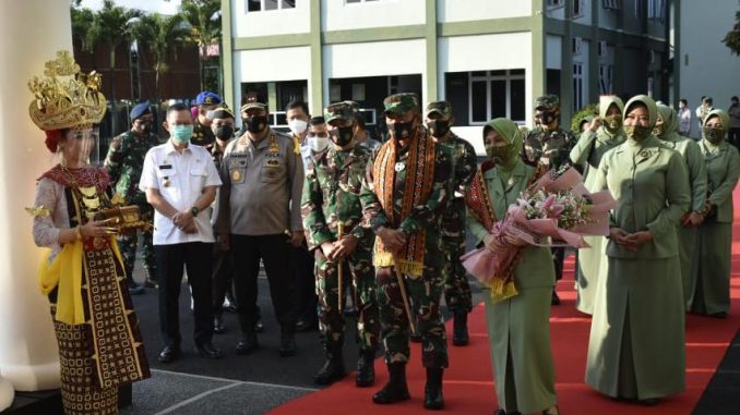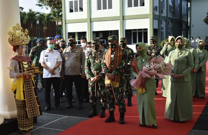 Bandar Lampung, wartasindo.com — Komandan Korem 043/Garuda Hitam Brigjen TNI Toto Jumariono, S.S.,M.I.Kom. didampingi Forkopimda Provinsi Lampung, menyambut kunjungan kerja Panglima Komando Daerah Militer II/Sriwijaya (Pangdam II/Swj) yang didampingi Ibu Ketua Persit Kartika Candra Kirana Daerah II/Swj dan rombongan di Makorem 043/Gatam Rabu,(16/09/2020).