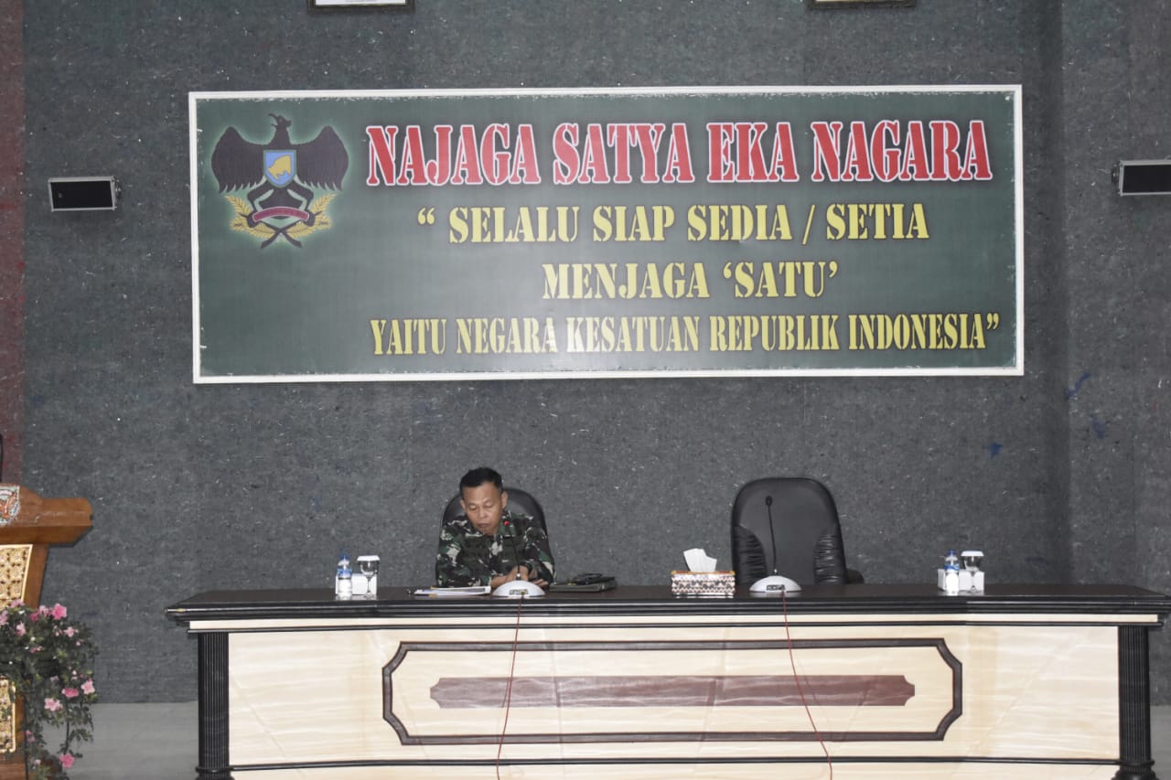 Kasrem 043/Gatam menyampaikan Untuk pelaksanaan upacara HUT TNI yang ke -75 digelar secara virtual rencananya akan dilaksanakan di Aula Ahmad Yani Makorem 043/ Gatam, terdiri dari Komandan satuan dan Forkopimda.