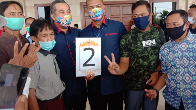 Pesawaran, wartasindo.com – Pengundian dan pengambilan Nomor Urut Pasangan Calon untuk Pemilihan kepala daerah pada 9 Desember mendatang ditetapkan untuk Pasangan Dendi-Mazuki ditetapkan nomor urut 2, kemudian pasangan M.Nasir-Naldi mendapat nomor urut 1, di Gedung Graha Adora jalan Baru, Kamis (24/9/2020).