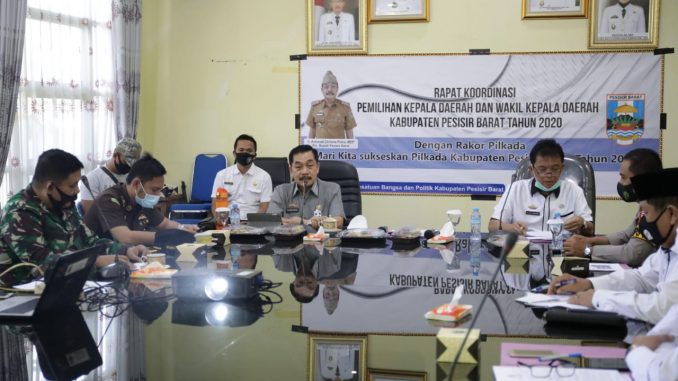 Pesisir Barat, wartasindo.com —- Pjs. Bupati Pesisir Barat, Achmad Chrisna Putra memimpin Rapat Koordinasi pemilihan kepala daerah dan wakil kepala daerah Kabupaten Pesisir Barat, bertempat di Ruang Batu Gughi Pemerintah Kabupaten Pesisir Barat, bersama Kapolres, Dandim, KPU, Bawaslu, OPD terkait dan perwakilan partai pendukung, Rabu (30/09/2020).
