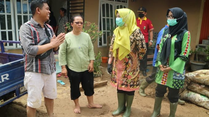Semaka, wartasindo.com — Pasca bencana banjir dan tanah longsor yang melanda wilayah Kecamatan Semaka pada Rabu malam (30/9/2020). Bupati Tanggamus Hj Dewi Handajani bersama jajaran meninjau lokasi bencana dan menemui sejumlah korban di Kecamatan Semaka, Kamis (01/10/2020).