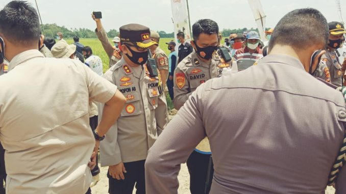Lampung Tengah, wartasindo.com — Kunjungan menteri Pertanian RI Dr. H. Syahrul Yasin Limpo, SH.,MH, didampingi Anggota DPR RI Komisi II, Hanan a Razak ke Dusun IV Kampung Tempuran Kec Trimurjo Lampung Tengah Dalam Panen Perdana dan Louncing Kartu Petani Berjaya, Selasa (06/10/2020).