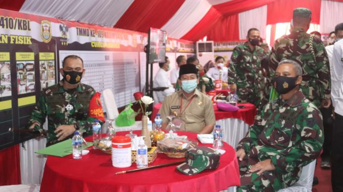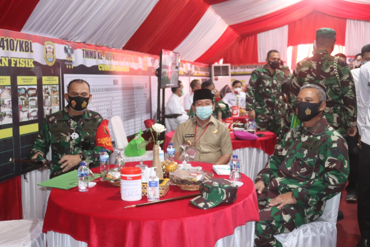 Komandan Kodim 0410/KBL Kolonel Inf Romas Herlandes mendampingi Danrem 043/Gatam dalam pelaksanaan penutupan TNI Manunggal Membangun Desa (TMMD) Ke-109 Tahun 2020 di Kelurahan Garuntang, Kecamatan Bumiwaras, Bandar Lampung. Rabu (21/10/20).