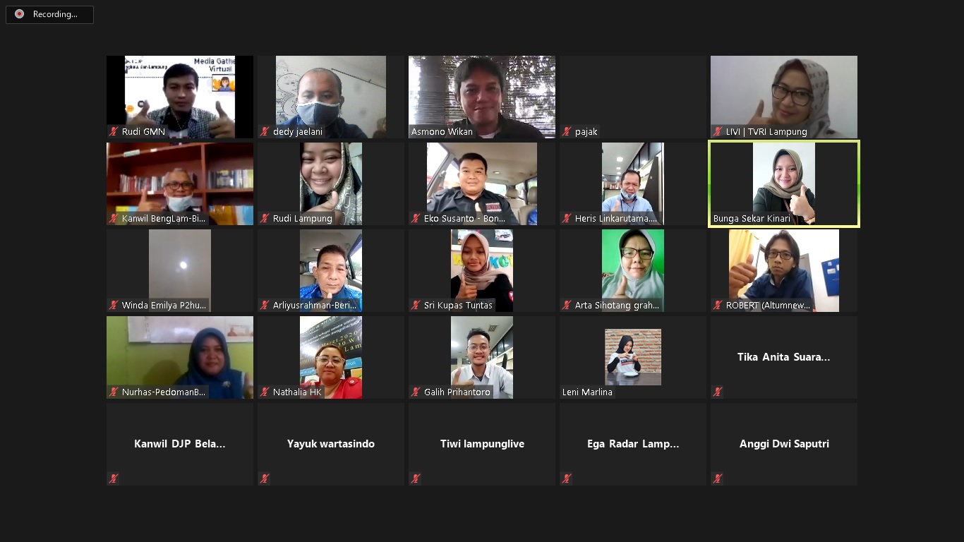 Kanwil DPJ Lampung, wartasindo.com – Bengkulu menggelar zoom meeting dalam membangun sinergitas bersama Insan media Provinsi Lampung dan Bengkulu, Kamis (22/10/2020).