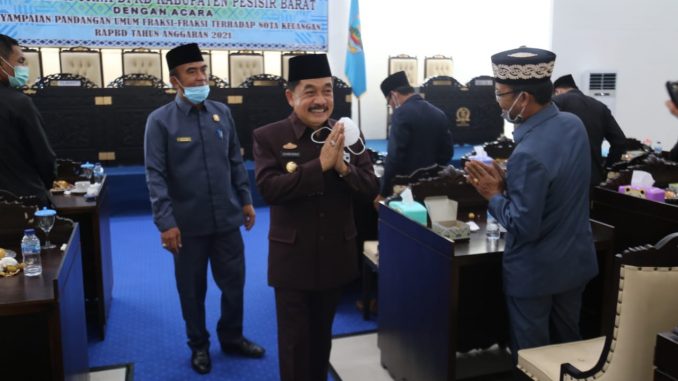 Agenda Rapat Paripurna hari ini adalah penyampaian pandangan. umum Fraksi – Fraksi terhadap Nota Pengantar Rencana Anggaran Pendapatan dan Belanja Daerah (RAPBD) Kabupaten Pesisir Barat Tahun 2021.