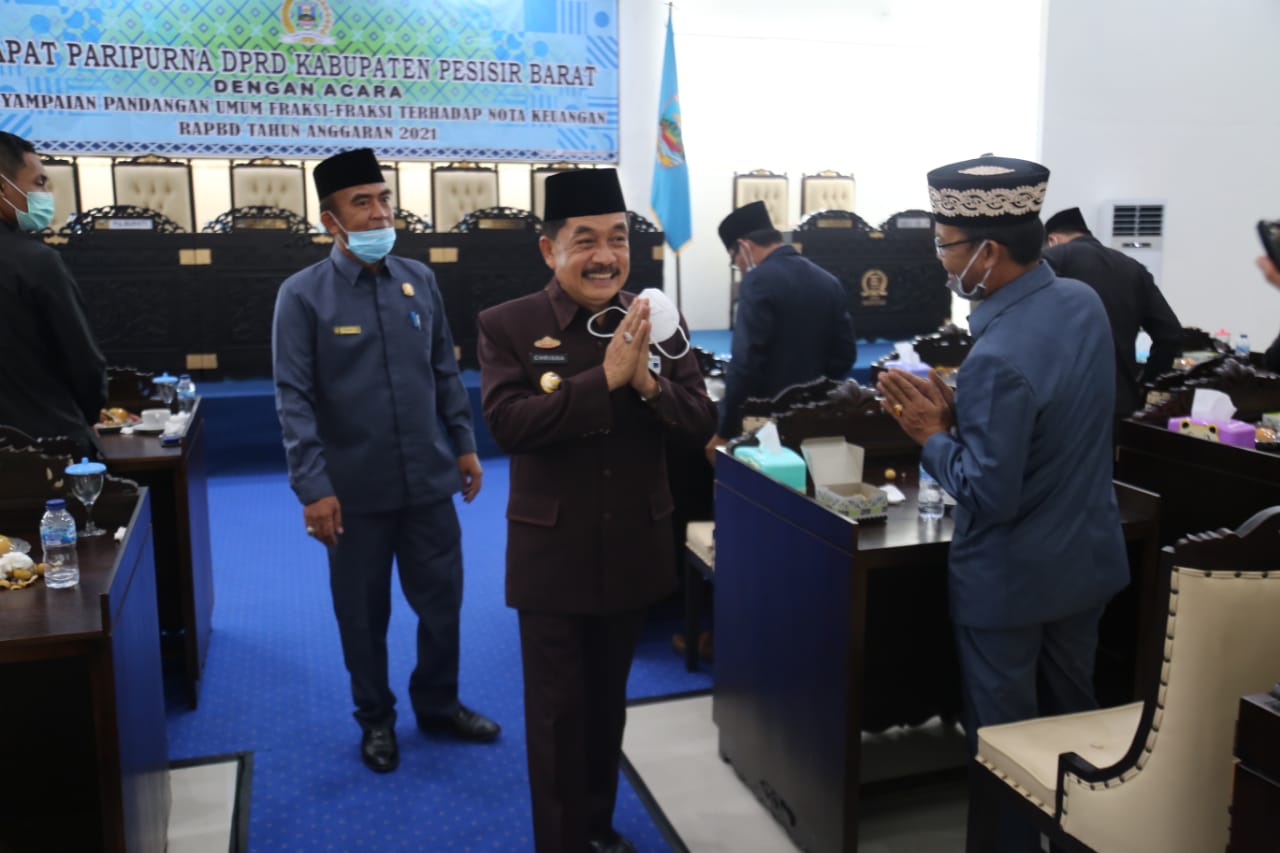 Sebelumnya, Pjs Bupati Pesisir Barat Achmad Chrisna Putra telah menyampaikan Pengantar Nota Keuangan atas Rancangan Peraturan Daerah Anggaran Pendapatan dan Belanja Daerah Kabupaten Pesisir Barat Tahun Anggaran 2021 pada Senin 26 Oktober 2020 yang lalu.