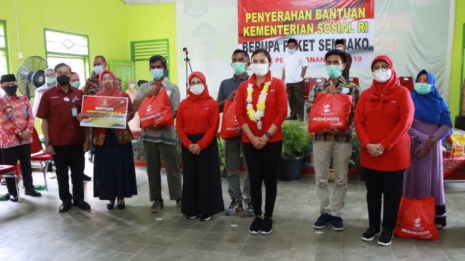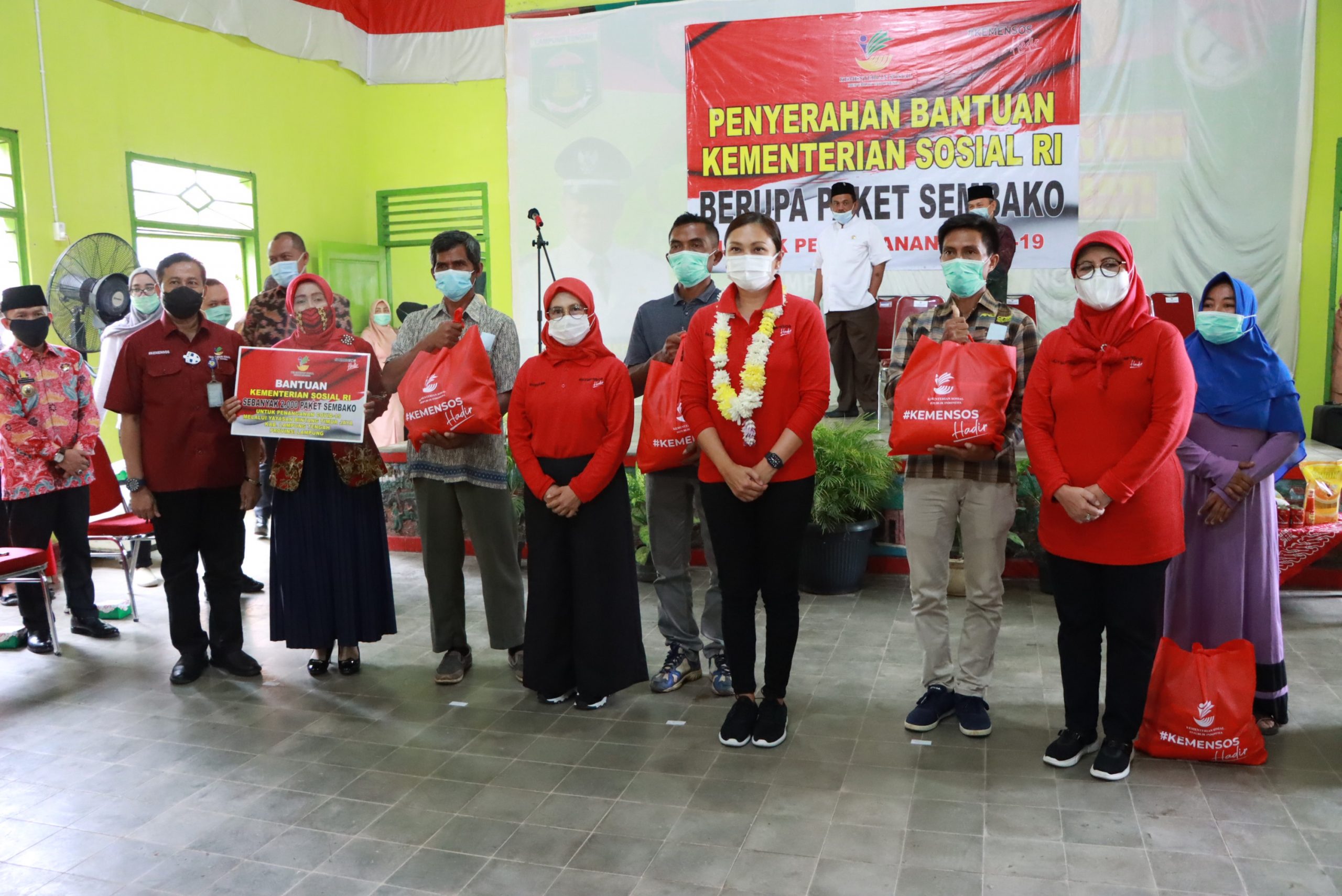 Dalam kegiatan tersebut Ibu Penasihat Dharma Wanita Persatuan Kementerian Sosial, Grace Batubara menyerahkan Bantuan Kementerian Sosial RI Berupa 2.000 Paket Sembako Untuk Penanganan Covid-19 kepada masyarakat Lampung tengah Melalui Yayasan Bintang Timur Jaya Lestari.