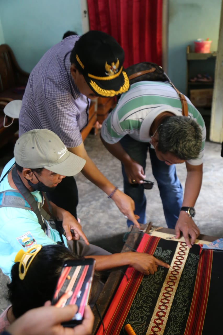 Pada kesempatan tersebut juga Pjs. Bupati beserta rombongan melihat cara menyulam tapis serta hasil kerajinan tapis yang asli berasal dari Kecamatan Pulau Pisang yang sudah dikenal hingga mancanegara.