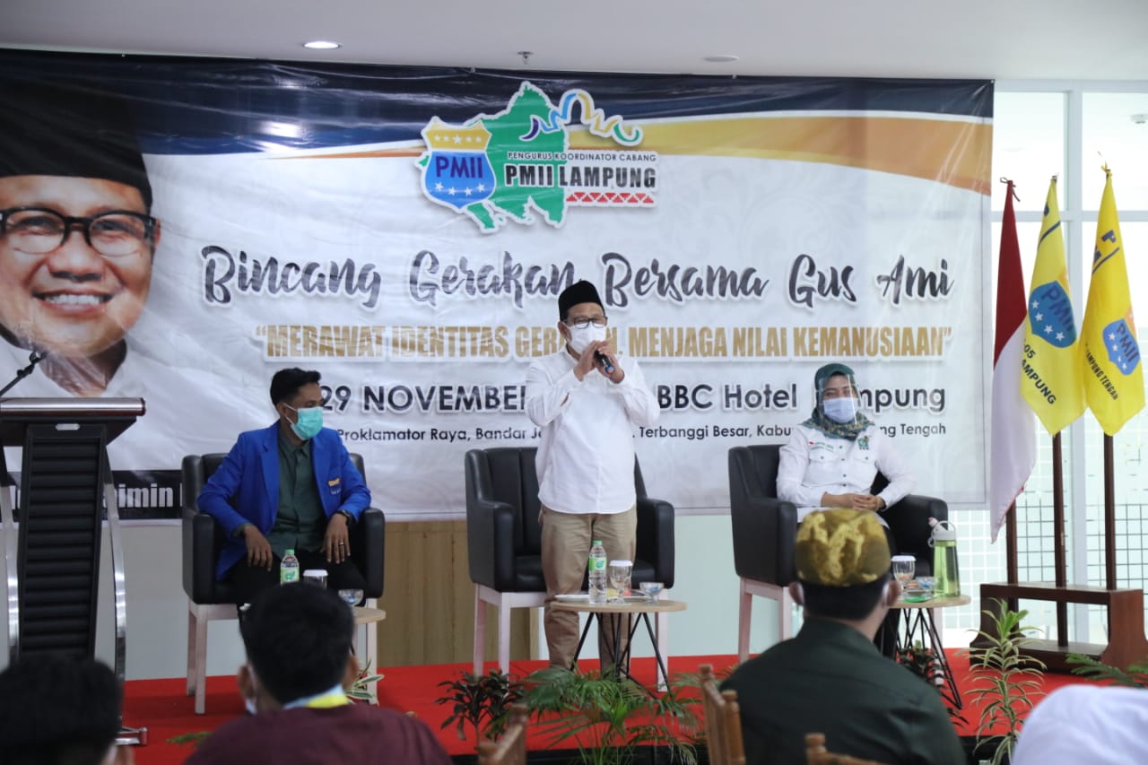 Hal itu disampaikan Muhaimin Iskandar atau Gus Ami saat acara Bincang Gerakan Bersama Gus Ami yang diselenggarakan oleh Pengurus Koordinator Cabang (PKC) PMII Lampung di BBC Hotel Lampung Bandar Jaya, Minggu (29/11/2020).