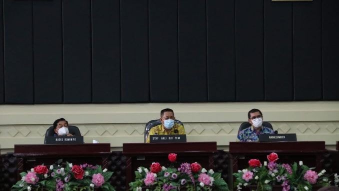 Bandar Lampung — Gubernur Lampung yang diwakili oleh Staf Ahli bidang Hukum dan Politik Pemerintahan, Syaiful Darmawan, membuka Rapat Koordinasi Pelayanan Informasi Publik Provinsi Lampung, di Gedung Pusiban Komplek Kantor Gubernur, Kamis (10/12).