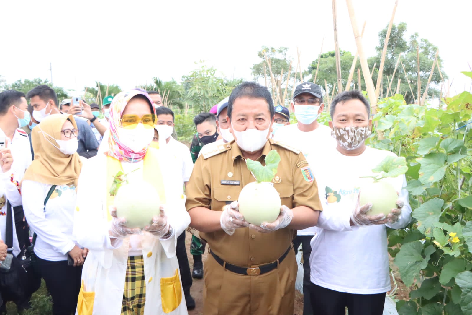 Acara diawali dengan panen perdana buah melon yang ditanam pada tanggal 6 Nopember 2020 yang lalu, secara bersama yang disaksikan oleh beberapa Pejabat dilingkungan Pemerintah Provinsi Lampung dan tamu undangan yang hadir kemudian dilanjutkan dengan peninjauan kebun buah.