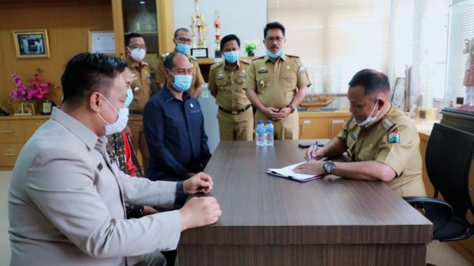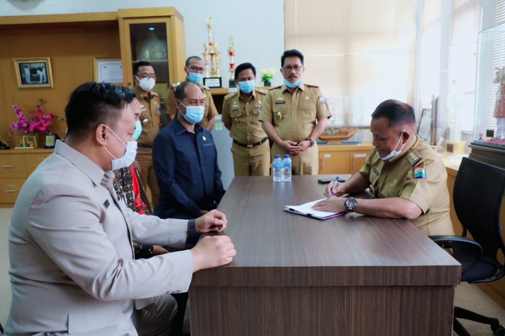 Usai melakukan perbincangan, Bupati Lampung Selatan, H. Nanang Ermanto menandatangan Usulan Pemberhentian dan Pergantian Antar Waktu Anggota DPRD Kabupaten Lampung Selatan dari Partai Gerindra yang disaksikan oleh Sekretaris Daerah, Thamrin, S. Sos dan beberapa Pejabat Srtuktural serta dari Fraksi Partai Gerindra, Waris Basuki, Bambang Irawan dan Untung Setia Budi yang diusulkan menggantikan Darol Kutni.(Red)