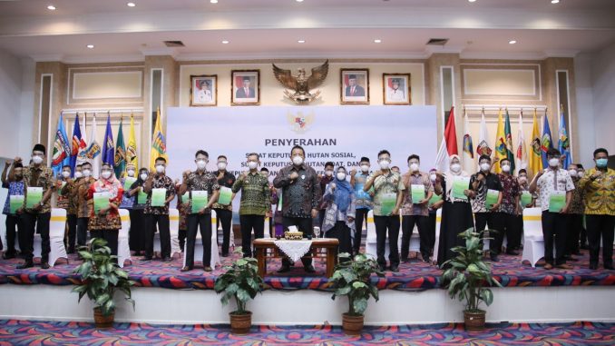 Penyerahan SK tersebut dipimpin langsung oleh Presiden RI Joko Widodo (Jokowi) di Istana Negara, Jakarta Pusat dan diikuti oleh Provinsi lainnya, dibarengi dengan penyerahan SK Hutan Adat dan Tanah Obyek Reforma Agraria (Tora).