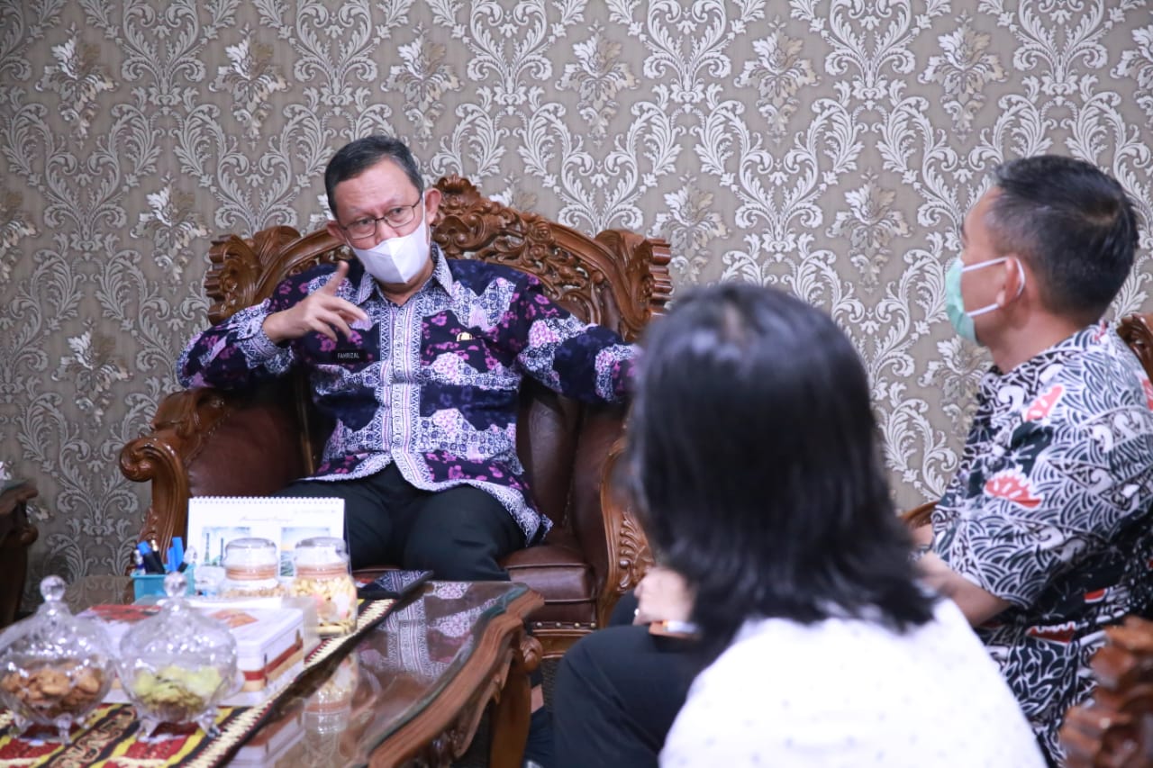 BANDARLAMPUNG —– Sekretaris Daerah Provinsi Lampung Fahrizal Darminto menerima audiensi Panitia Bulan Bakti Unit Budaya Lampung (Ubala) ITB XVII, di Ruang Kerja Sekda, Kantor Gubernur Lampung, Bandarlampung, Jum’at (8/1/2021).