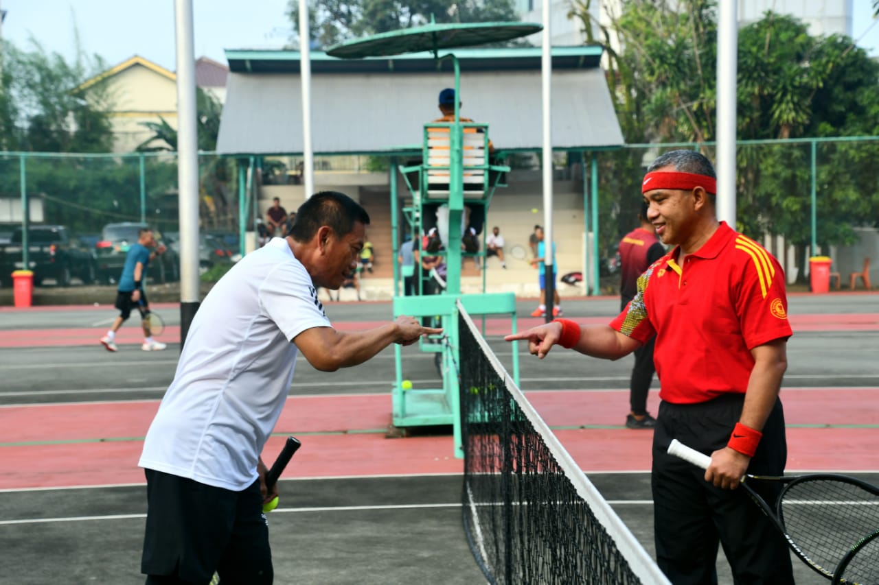 Olahraga persahabatan antara Tim Tenis Lapangan Kodam II/Swj dengan Tim Tenis Lapangan Korem 043/Gatam diikuti ± 32 orang, diantaranya Kasdam II/Swj, Brigjen TNI Muhammad Zamroni, S.I.P, Irdam II/Swj, Brigjen TNI Henra Hari Sutaryo, Kapok Sahli Pangdam II/Swj, Brigjen TNI Puji Cahyono, SIP.