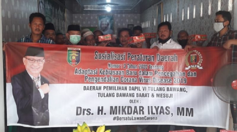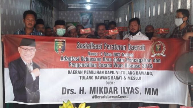 Anggota Komisi I DPRD Lampung Fraksi Partai Gerindra Mikdar Ilyas menggelar Sosialisasi Peraturan Daerah (Sosperda) Provinsi Lampung Nomor 3 Tahun 2020 Tentang Adaptasi Kebiasaan Baru Dalam Pencegahan Dan Pengendalian Coronavirus Disease19.
