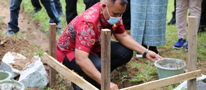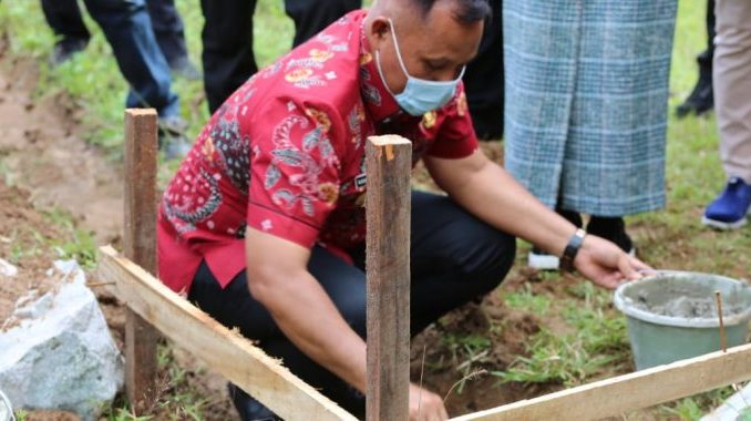 TANJUNG BINTANG – Bupati Lampung Selatan, H. Nanang Ermanto melakukan peletakan batu pertama Kantor Balai Desa Sabah Balau, Kecamatan Tanjung Bintang, Kamis (4/2/2021).