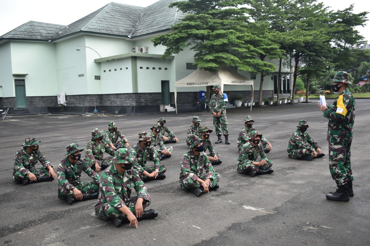 Bandar Lampung 08/02/2021, —- Bertempat di Lapangan apel Makorem 043/Gatam Jalan Tengku Umar No 85 Kelurahan Penengahan Kecamatan Kedaton Kota Bandar Lampung, Prajurit Makorem 043/Gatam mengikuti kegiatan Latihan Dasar Perorangan Triwulan I tahun 2021.