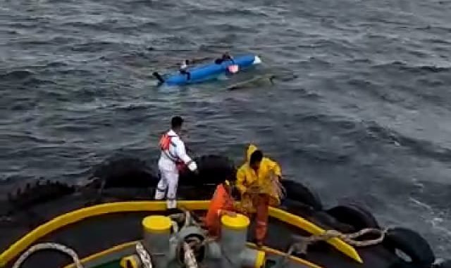 KOTAAGUNG — Cuaca buruk yang terjadi di Perairan Teluk Semaka, Senin sore (8/2) menyebabkan perahu nelayan jenis katir terbalik. Beruntung tidak ada korban dalam peristiwa tersebut, dua orang nelayan warga Kotaagung berhasil diselamatkan