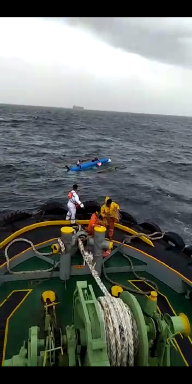 Lalu Pos II Security PT Pertamina Marine Teluk Semaka menerima informasi dari tagboat Amazon Harbour adanya perahu pancing jenis katir terbalik dengan dua orang awak perahu.