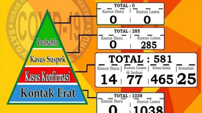 “Dengan bertambahnya 14 kasus baru tersebut, kini total keseluruhan kasus konfirmasi mencapai angka 581 kasus dengan rincian kasus baru 14, sedang menjalani isolasi 77, selesai isolasi 465, dan kematian 25,” kata Misnan.(Red)