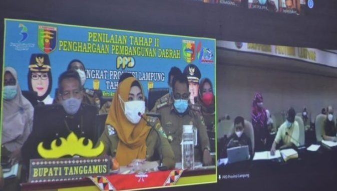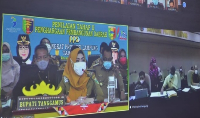 Kotaagung — Pemkab Tanggamus mengikuti Penilaian Tahap II PPD Tahun 2021, melalui virtual meeting di Ruang Rapat Utama Pemkab Tanggamus, Senin (15/2/2021).