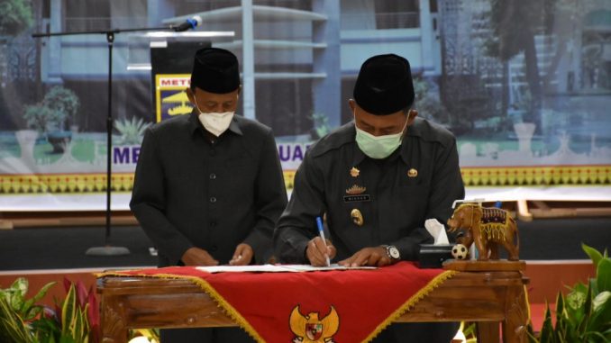 Metro, — Kamis (18/02/2021), Pemerintah Kota Metro gelar Serah Terima Jabatan (Sertijab) dan pelepasan Walikota dan Wakil Walikota Metro periode 2016-2021 serta Serah Terima Jabatan TP-PKK Kota Metro, di Gedung Sessat Agung Bumi Sai Wawai (GSABSW) Kota Metro.