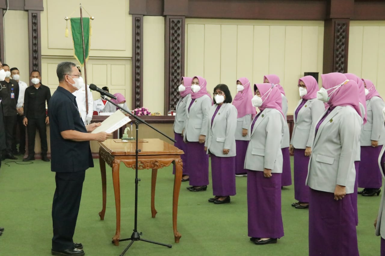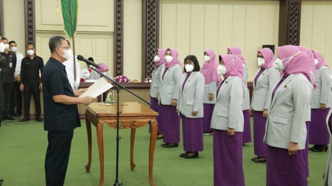 Bandar Lampung — Sekretaris Daerah Provinsi Lampung, Fahrizal Darminto, mewakili Gubernur Lampung melantik Kepengurusan Badan Kerjasama Organisasi Wanita (BKOW) Provinsi Lampung Masa Bakti 2020-2025, di Gedung Pusiban Komplek Perkantoran Gubernur, Rabu (24/02).