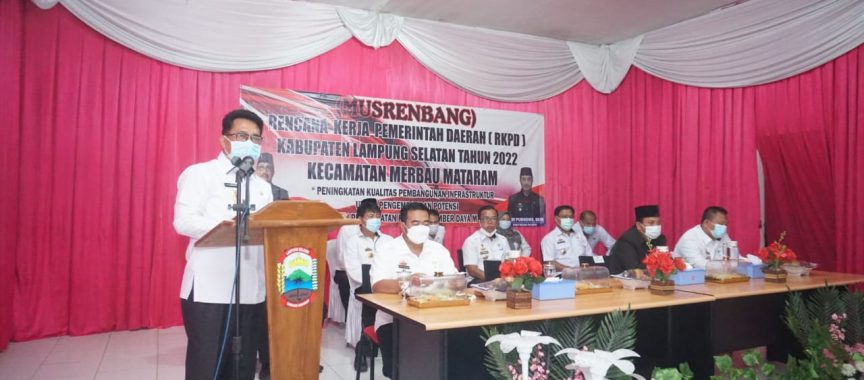 MERBAU MATARAM, – Pelaksana harian (Plh) Bupati Lampung Selatan, Thamrin, S.Sos, MM secara resmi membuka Musyawarah Rencana Pembangunan (Musrenbang) Kecamatan Merbau Mataram, Rabu siang (24/02/2021).