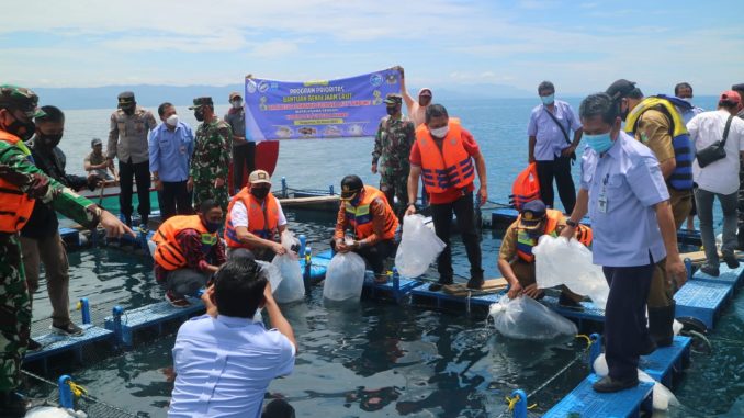 Dalam Kunkernya ini, Danrem melaksanakan kegiatan Tebar Benih Ikan Kerapu di Karamba milik masyarakat setempat.
