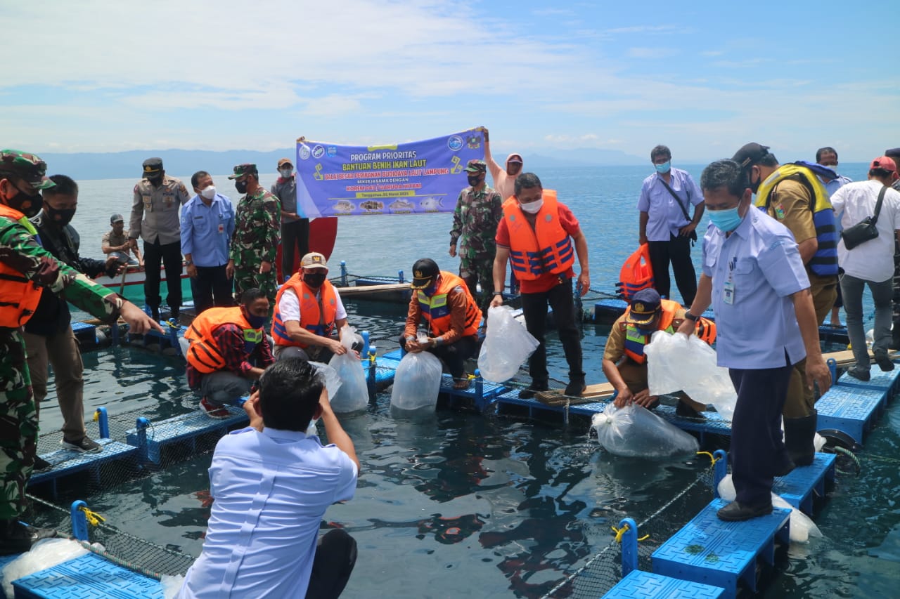 Danrem 043 Gatam, Brigjen TNI Toto Jumariono, dalam sambutannya menyampaikan kunjungan kerjanya dilaksanakan untuk melepaskan bibit benih ikan karapu budidaya laut.