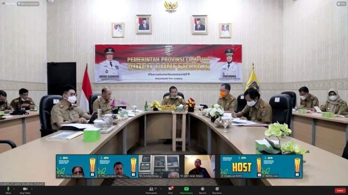 Bandar Lampung – Gubernur Lampung Arinal Djunaidi memamparkan sejumlah inovasi dalam membangun Provinsi Lampung kepada tim penilai Penghargaan Pembangunan Daerah (PPD) 2021 secara virtual di Ruang Command Center Diskominfotik Lampung. Senin, (1/3/2021).