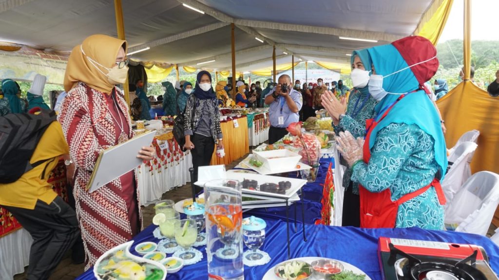 Riana Sari Arinal selalu Juri dalam lomba tersebut mengunjungi stand TP PKK Kabupaten Lampung Selatan dan langsung memberikan penilaian terhadap seluruh para peserta lomba lainnya.