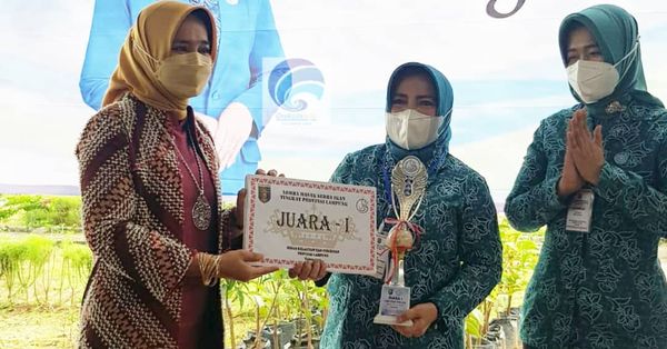 Penyerahan Juara langsung diserahkan oleh Ketua Tim Penggerak PKK Provinsi Lampung Ny. Riana Sari Arinal Djunaidi kepada Ny. Mardiana Musa Ahmad, kemudian hadir juga Ketua Tim Penggerak PKK Kabupaten/Kota se- Provinsi Lampung. Hadir mendampingi Ketua Tim Penggerak PKK Kabupaten Lampung Tengah Ny. Mardiana Musa Ahmad yaitu, Ketua 2 TP PKK Kabupaten Lampung Tengah Yulita Nirlan, Kepala Dinas Perikanan Kabupaten Lampung Tengah Ir. Laksono Ramdan, M.M dan Jajaran kelompok Kerja 3 TP PKK Kabupaten Lampung Tengah.(Red)