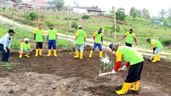 Terlihat dilokasi salah satu pengawas dari Lapas Kelas II A Kalianda, Panuju sedang memberi arahan kepada para warga binaan yang dijadwalkan saat ini, Senin (5/4/2021).