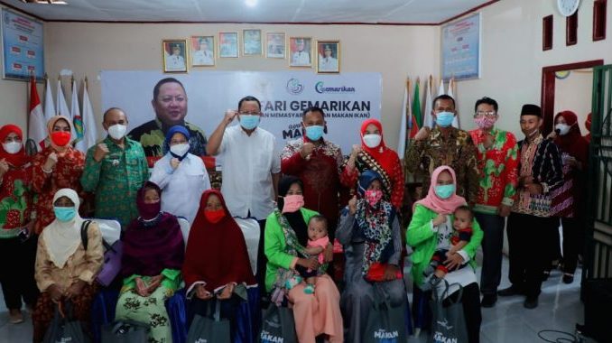 PENENGAHAN – Dalam rangka mengkampanyekan Gerakan Makan Ikan, Kementerian Kelautan dan Perikanan RI lakukan agenda kegiatan Gemarikan bersama Ketua Komisi IV DPR RI, Sudin, SE di Kantor Desa Gandri Kecamatan Penengahan Lamsel, Kamis (15/4/2021).