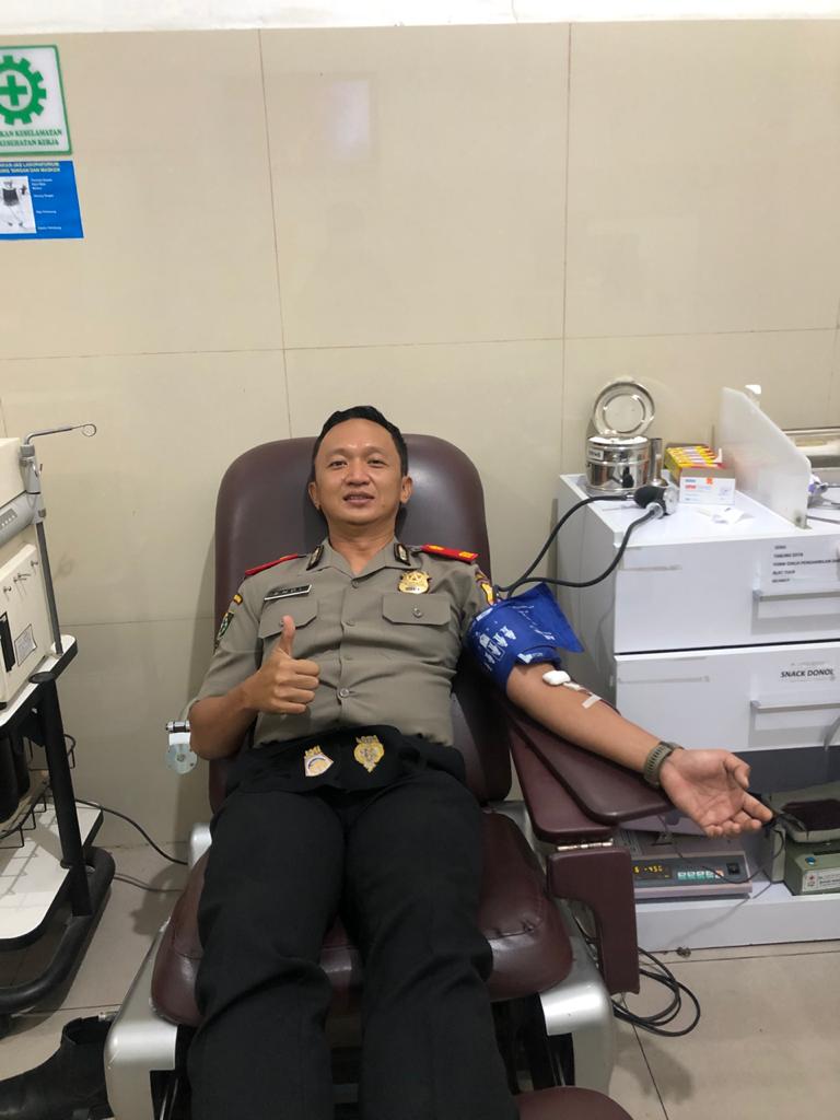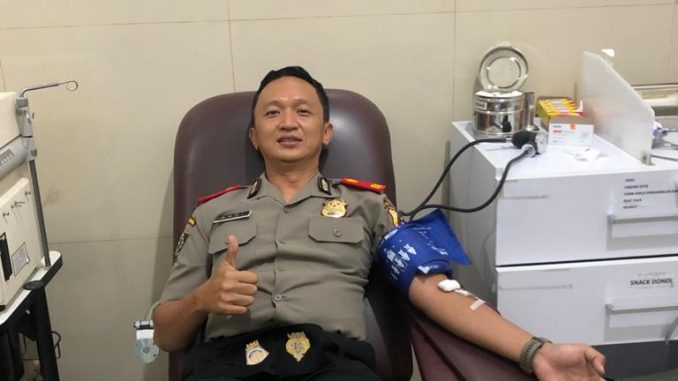 Kompol Endhie Pratama,SIK, MM, meluangkan waktu, untuk membantu sesama dengan mendonorkan darahnya ke kantor PMI kota Bandar Lampung yang akan disumbangkan untuk masyarakat Lampung yang membutuhkan pada Kamis (15/4).