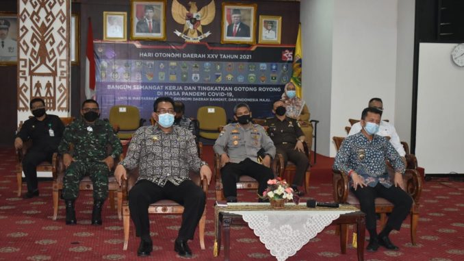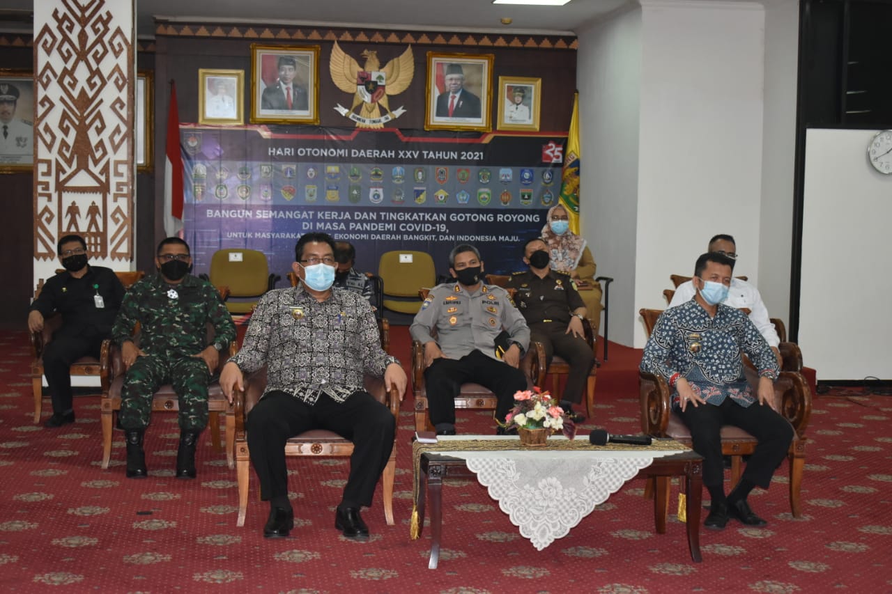 Kasrem 043/Gatam Kolonel Inf Dwi Endrosasongko,S.Sos. ikuti Peringatan Hari Otonomi Daerah XXV Tahun 2021 dengan metode virtual meting se-Indonesia yang dipimpin oleh Wakil Presiden RI Prof. Dr. KH. Ma’ruf Amin bertempat di Ruang Abung Balai Keratun Kantor Pemprov Lampung Jl. Wolter Monginsidi No. 69 Kel. Talang Kec. Teluk Betung Selatan Kota Bandar Lampung.senin 26/4/2021.