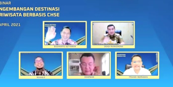 Adapun rangkaian kegiatan pada acara dimaksud salah satunya adalah penyelenggaraan webinar dengan tema “Pengembangan Destinasi Pariwisata berbasis CHSE”.