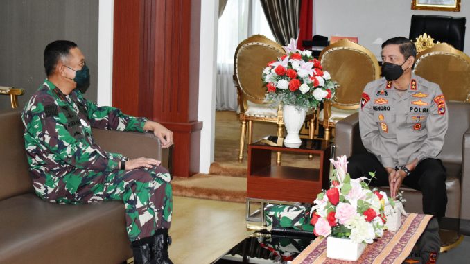 Bandar Lampung, – Komandan Korem 043/Garuda Hitam Brigjen TNI Drajad Brima Yoga, S.I.P., M.H., didamping Kasrem 043/Gatam Kolonel Inf Dwi Endro Sasongko, S.Sos, Kasi Intel Korem 043/Gatam Kolonel Inf Agus Wahyudi dan Kasi Ops Korem 043/Gatam Kolonel Inf Slamet Winarto, mengunjungi Polda Lampung. selasa (21/4/2021) pukul 12.30 Wib.