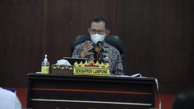 Bandar Lampung — Sekretaris Daerah Provinsi Lampung, Fahrizal Darminto, memimpin Rapat menindaklajuti Arahan Presiden tentang Penanggulangan Covid-19 di Provinsi Lampung, bertempat di Posko Satgas Terpadu Gugus Tugas Penanganan Covid-19 Provinsi Lampung Ruang Abung Balai Keratun, Kamis (29/04).
