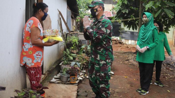 Komandan Kodim 0410/KBL Kolonel Inf Romas Herlandes, S.E.,M.Si.,M.M., didampingi Ketua Persit KCK Cab. XXX Dim 0410/KBL Ny. Esa Romas Herlandes, melaksanakan kegiatan Bakti Sosial, dengan membagikan sembako dan masker agar masyarakat patuhi Prokes menggunakan masker bertempat di Jln. Saburai Kel. Gunung Sula Kec. Way Halim, Kota Bandar Lampung.” Minggu (02/5/2021)
