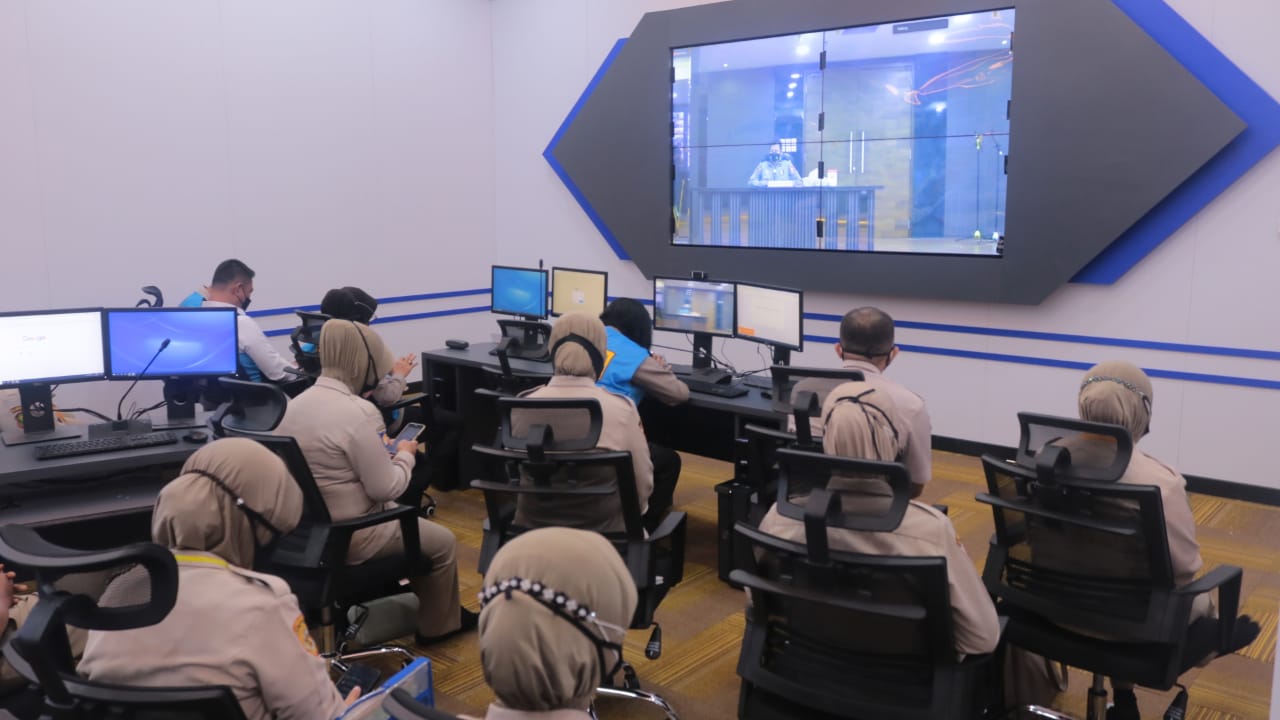 Bandarlampung – Kepala Biro Sumber Daya Manusia (Karo SDM) Polda Lampung Komisaris Besar (Kombes) Polisi Endang Widowati mengikuti pelaksanaan penandatanganan Pakta Intergitas Ujian Dinas Kenaikan Pangkat PNS Polri di Command Center Polda Lampung melalui sarana video conference (vicon), Senin (3/5/2021).