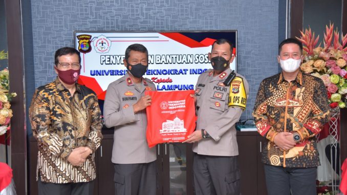 Dalam kesempatan itu Rektor Universitas Teknokrat Indonesia menyampaikan permohonan kepada Polda Lampung untuk membantu menyalurkan bantuan berupa paket sembako peduli Covid-19 ini kepada masyarakat yang terdampak.