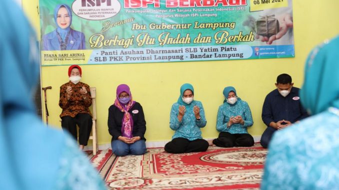 Bandar Lampung, – Ibu Riana Sari Arinal Selaku Ketua Tim Penggerak PKK Provinsi Lampung Menyalurkan bantuan paket sembako untuk anak berkebutuhan khusus, di Panti Asuhan Dharmasari SLB Yatim Piatu Bandar Lampung.