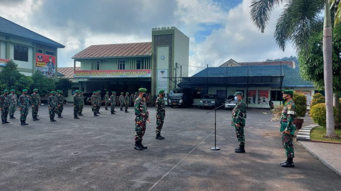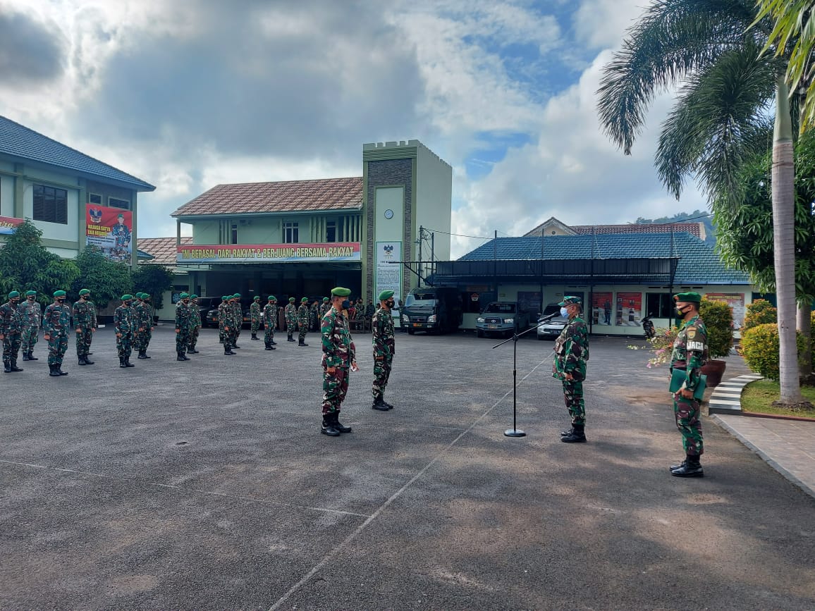 Pasi Ops Kodim 0410/KBL Mayor Inf Dja’far, pimpin kegiatan apel siaga dalam rangka pengamanan hari raya Idul Fitri 1442 H/2021 M, di Kodim 0410/KBL Jln. Imam Bonjol Kel. Gunung Agung Kec. Langkapura, Kota Bandar Lampung.